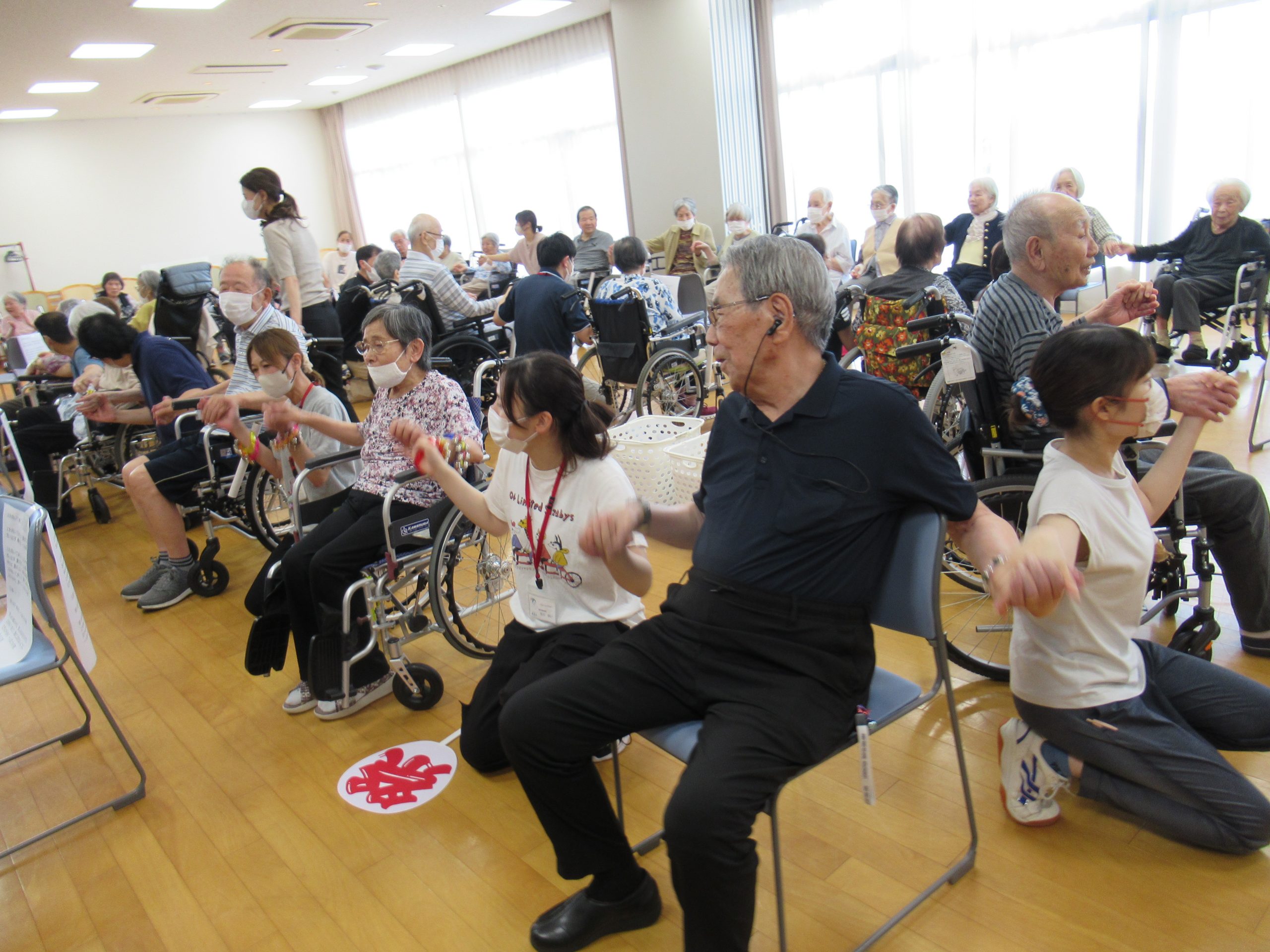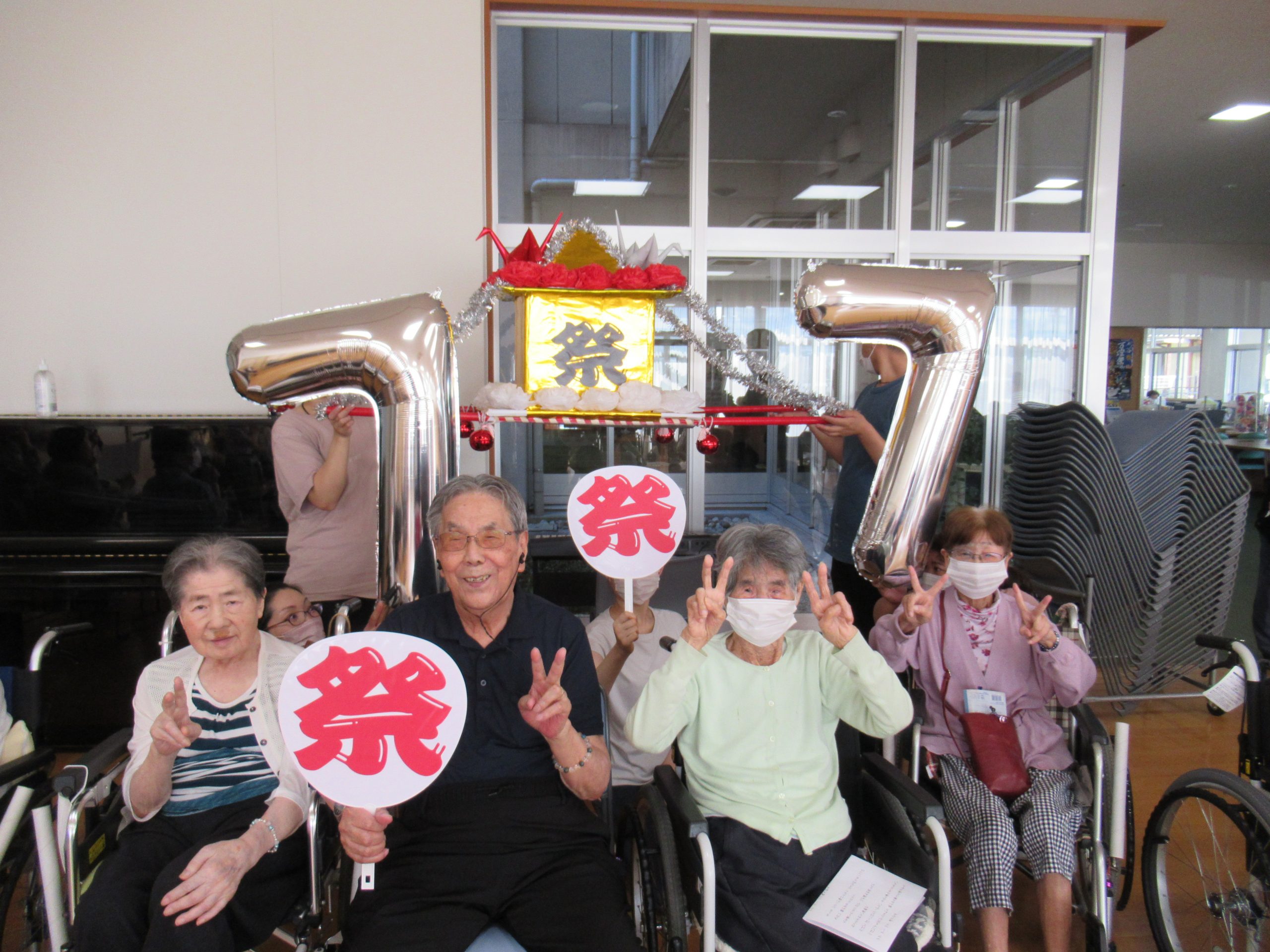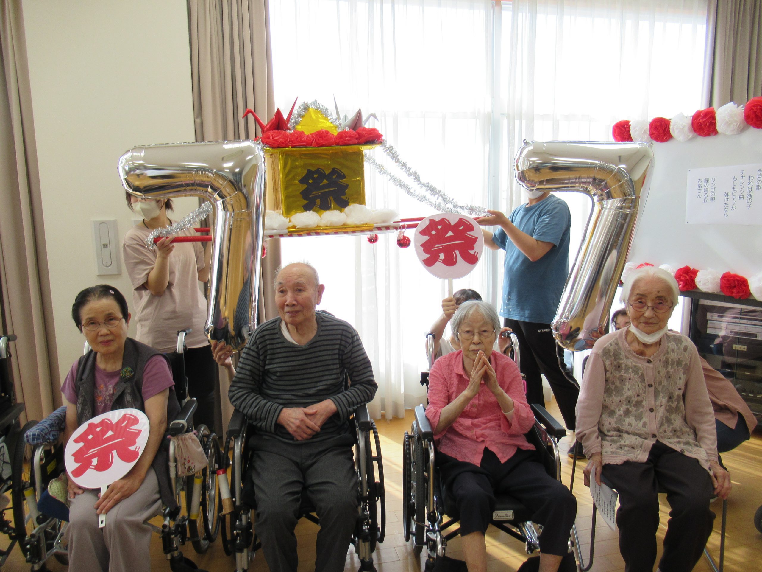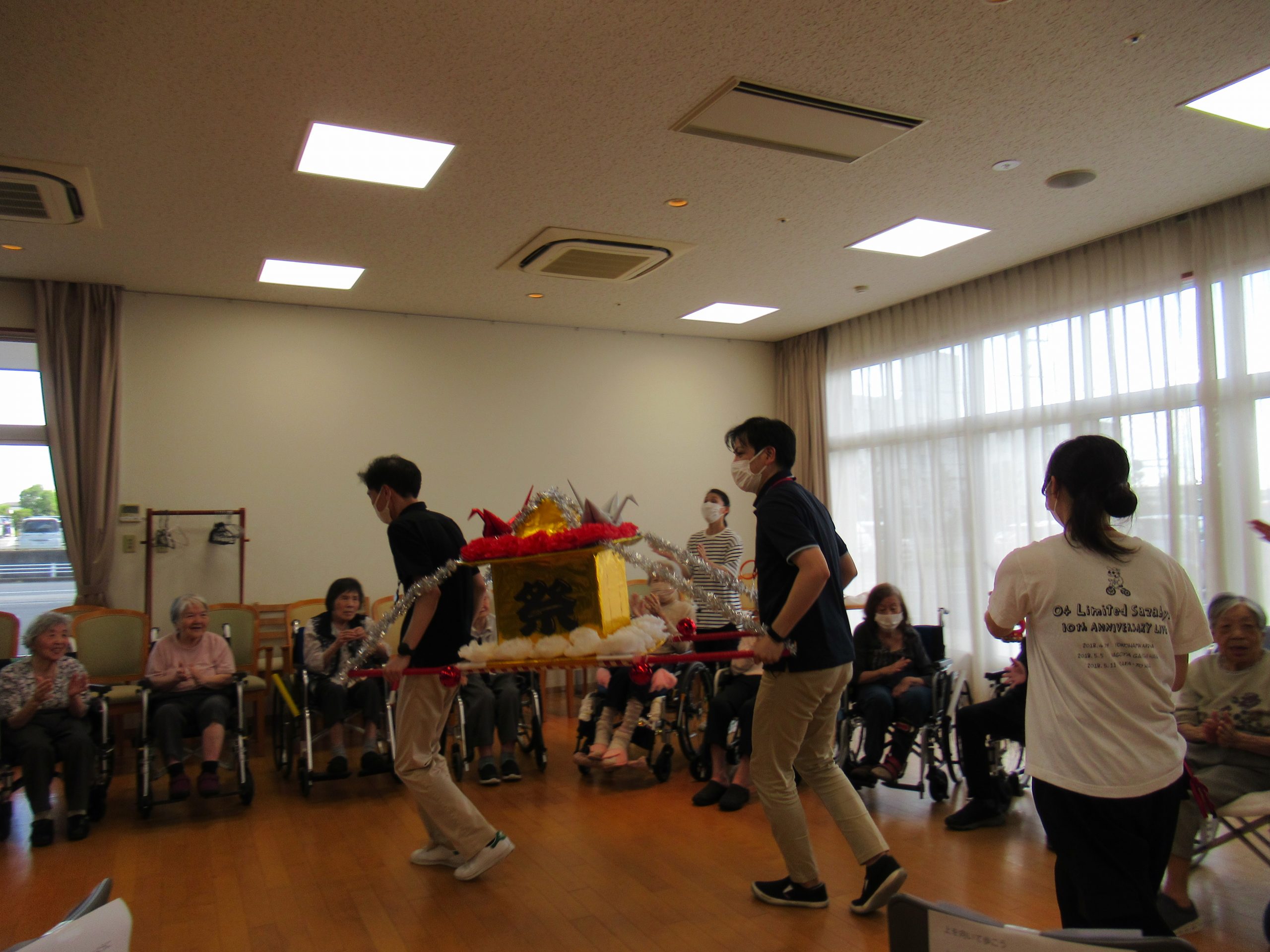 「幸せなら手をたたこう」や「上を向いて歩こう」を歌ったり、おみこし登場で「わっしょい」「わっしょい」