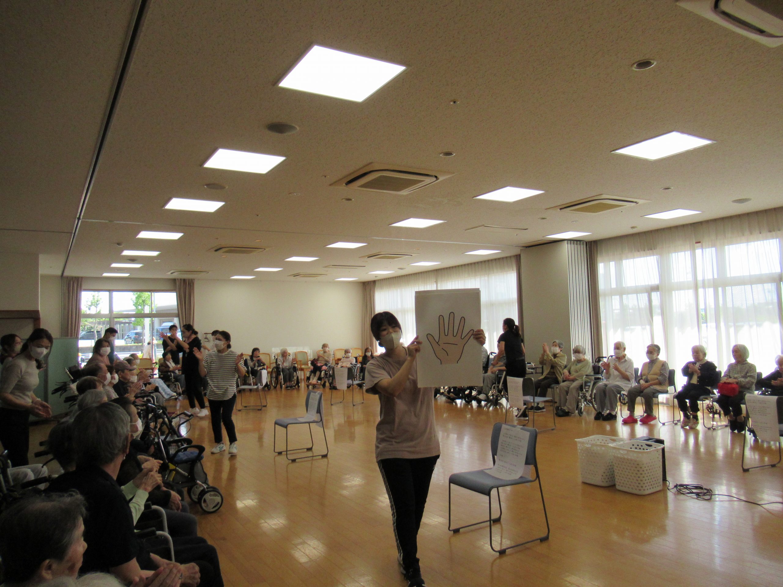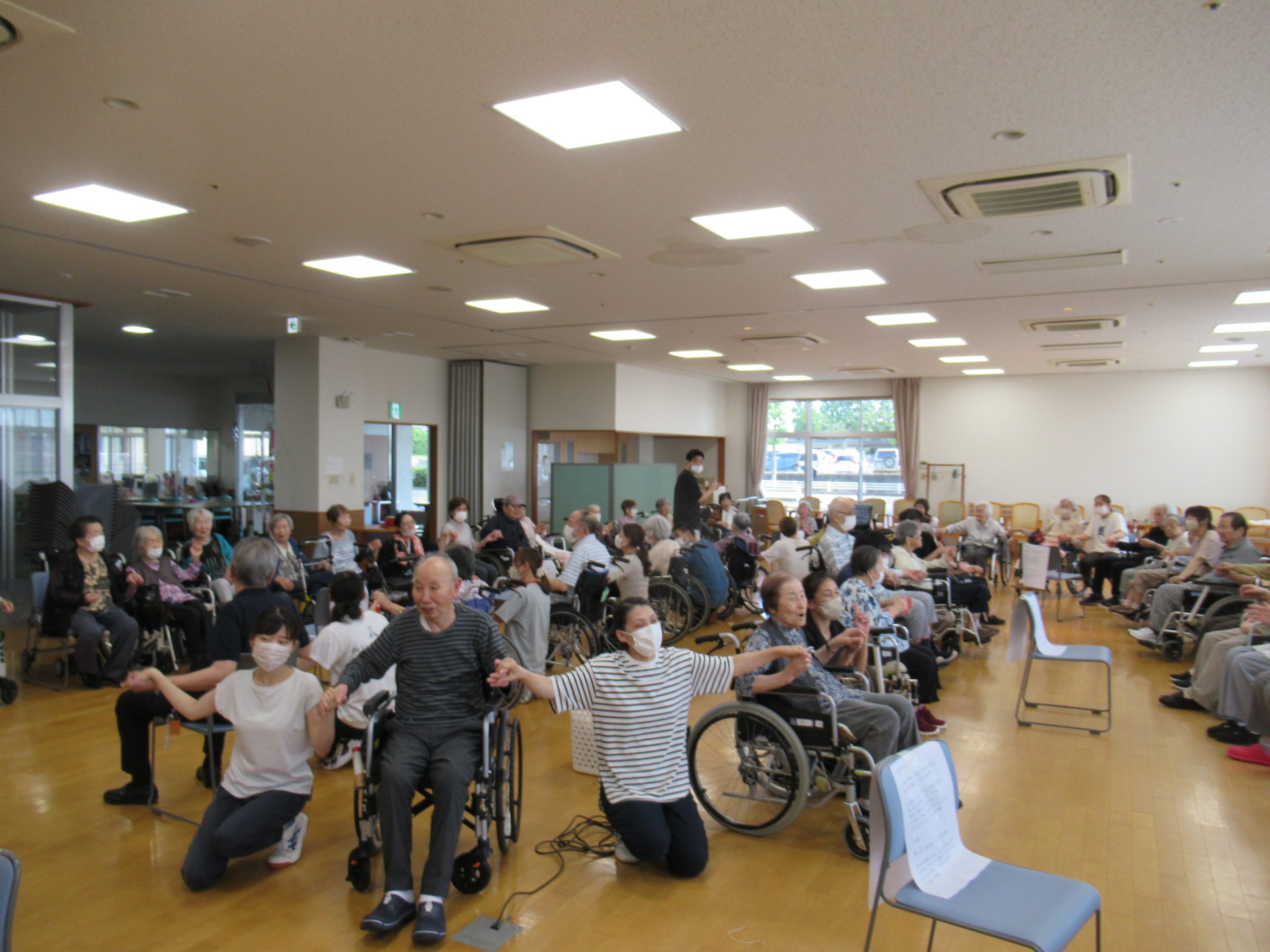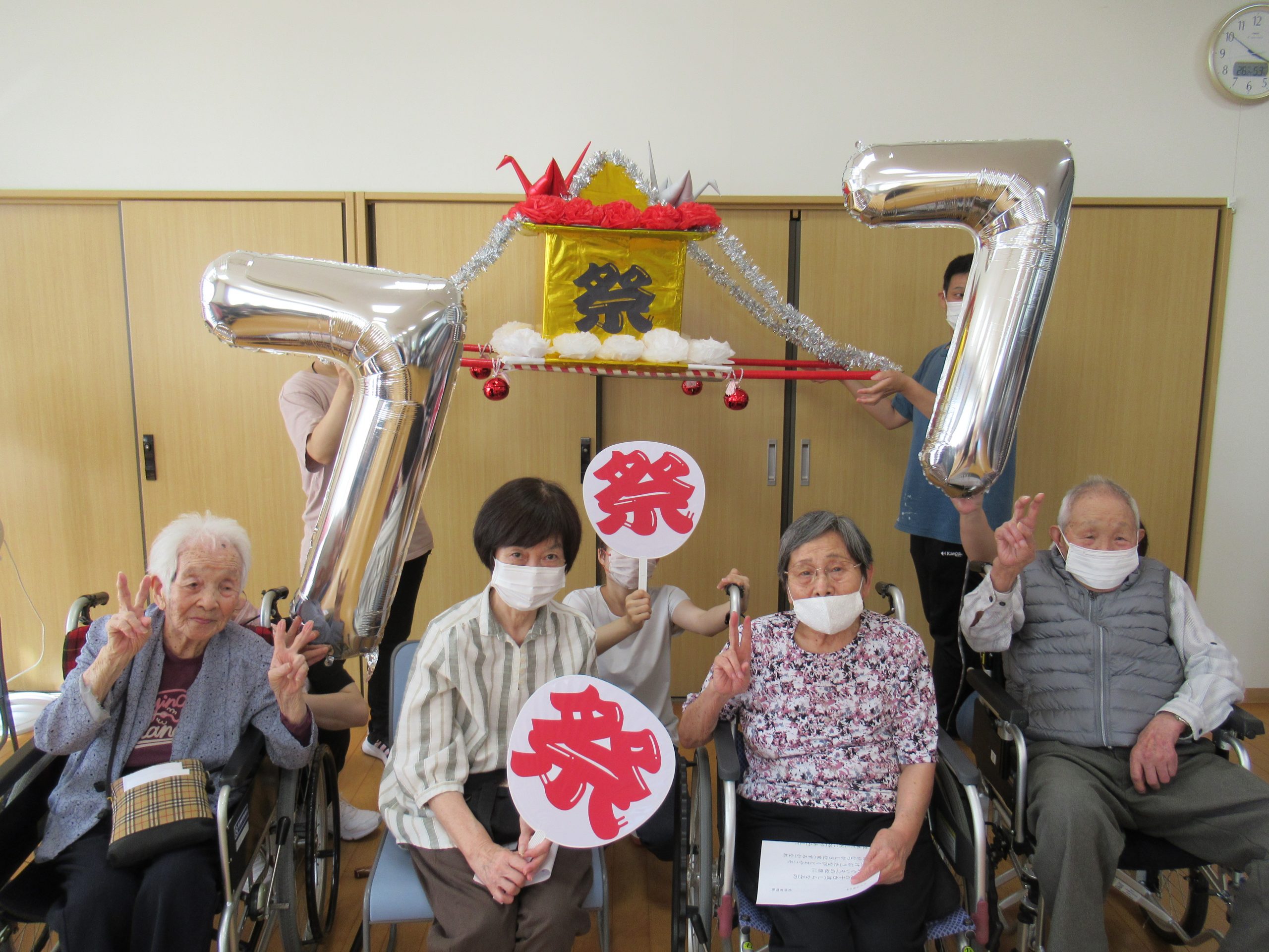 「幸せなら手をたたこう」や「上を向いて歩こう」を歌ったり、おみこし登場で「わっしょい」「わっしょい」