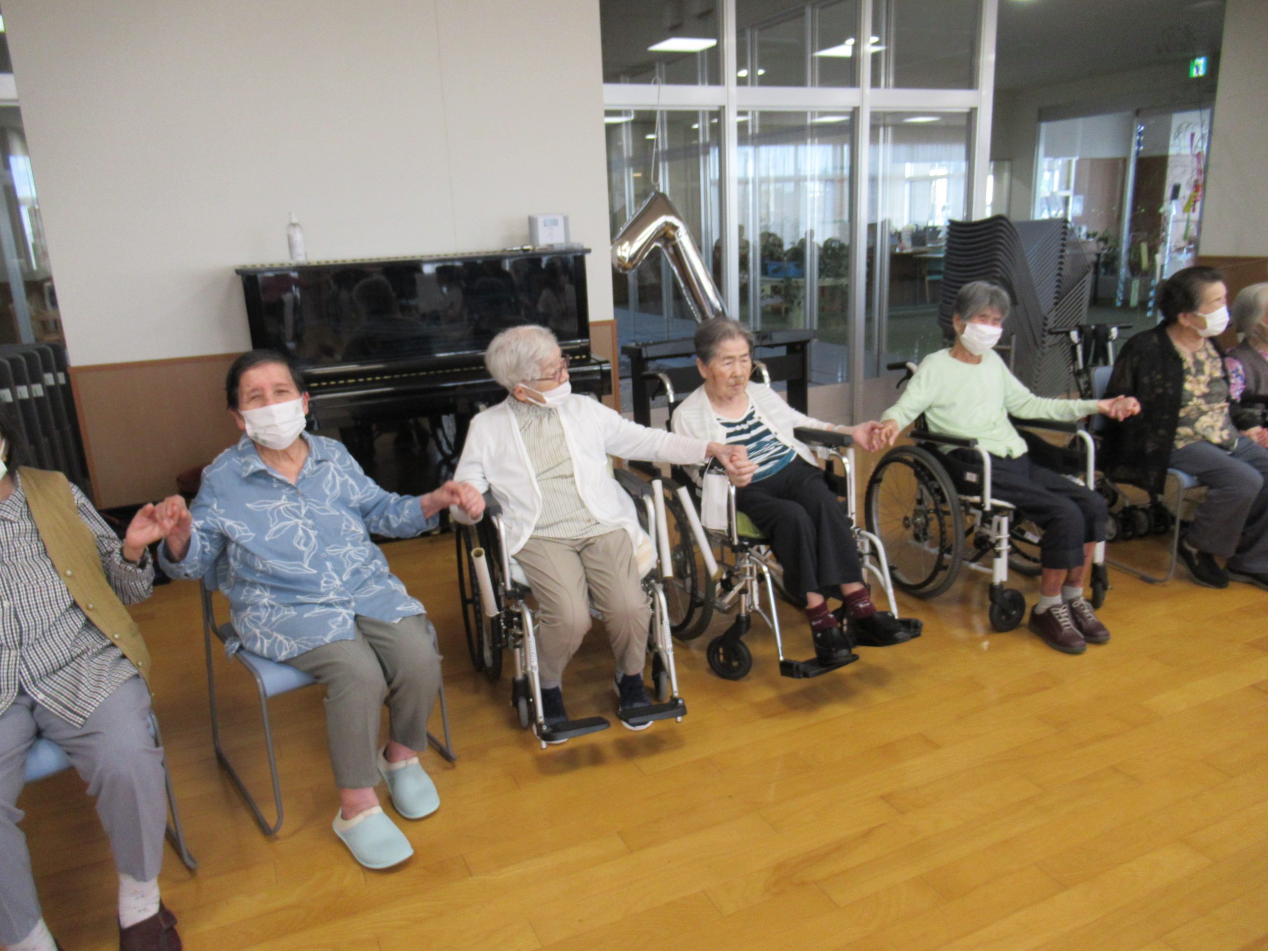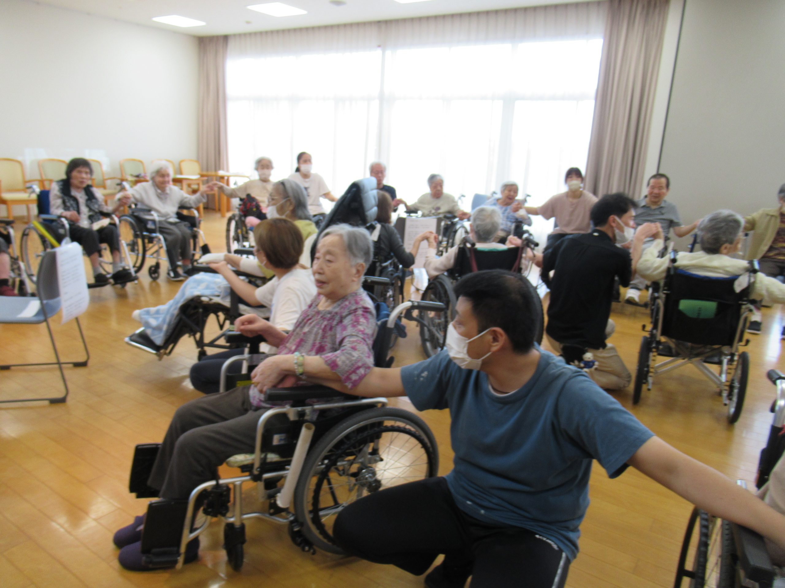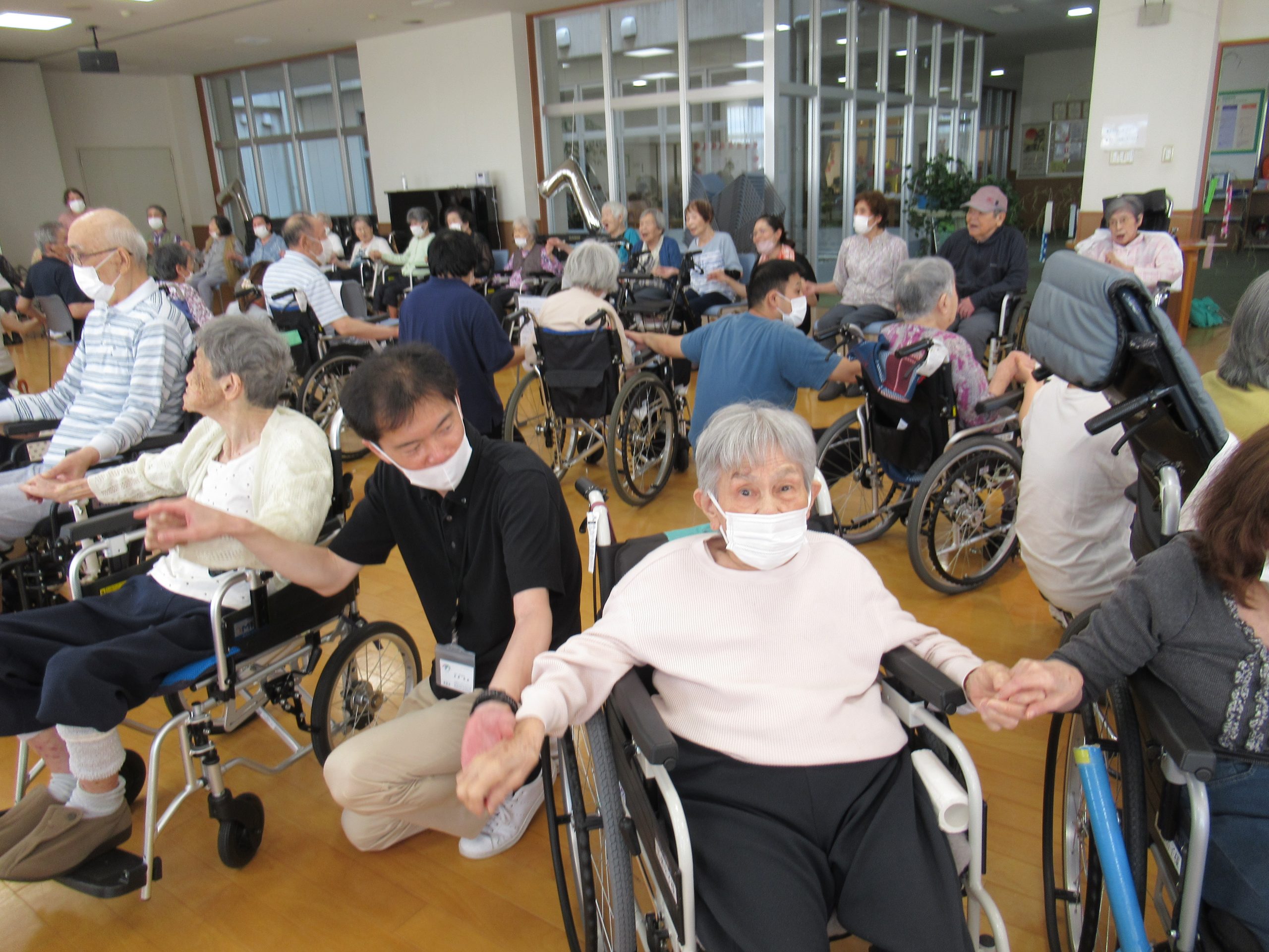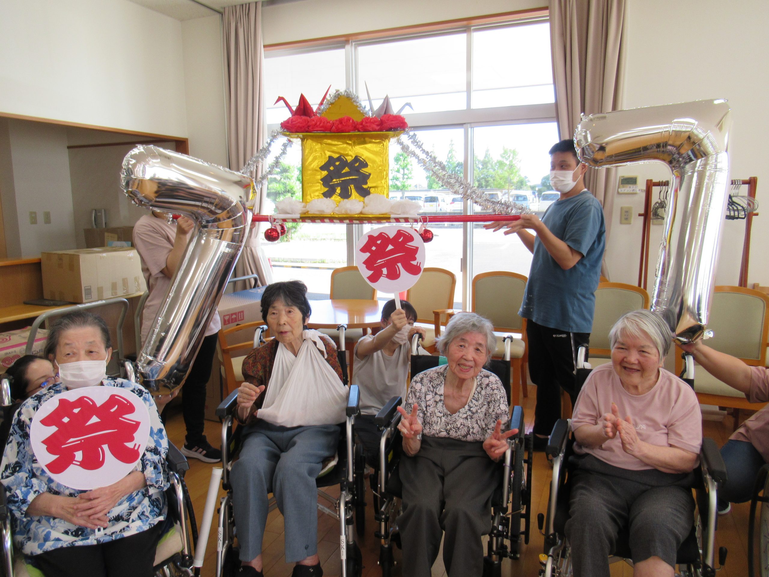 「幸せなら手をたたこう」や「上を向いて歩こう」を歌ったり、おみこし登場で「わっしょい」「わっしょい」