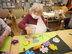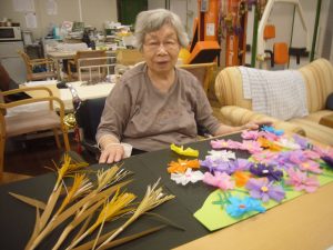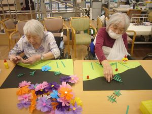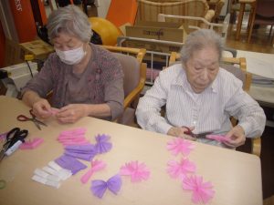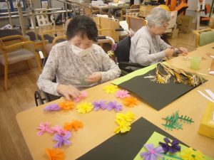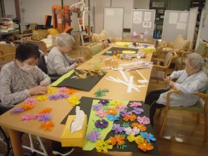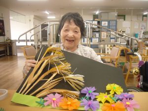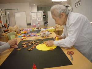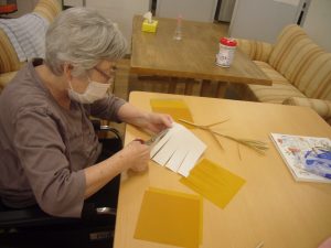 ススキや葉っぱも作っていきます! 切るも貼るも大変です!