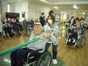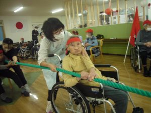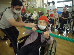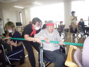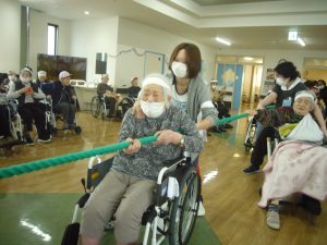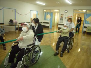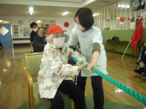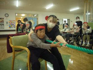 利用者様も職員も、みんな協力して綱を引きます\(^o^)/