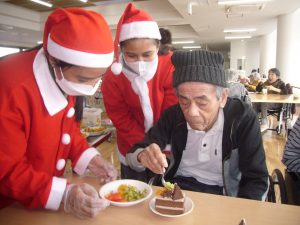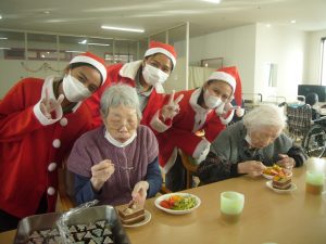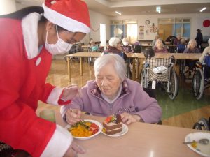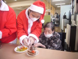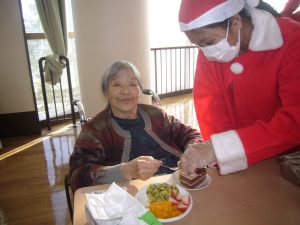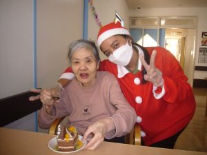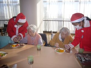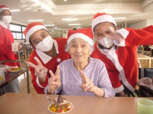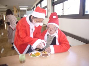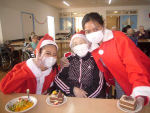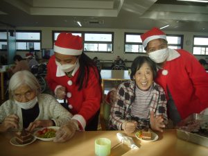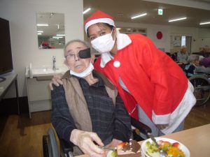 ご利用者様も職員さんもサンタの衣装に着替えて、