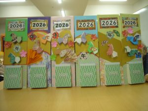 折り紙でいろんな飾りを折って、個性豊かなカレンダーが