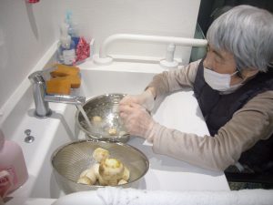 施設の庭で収穫した大根とカブを料理します♡