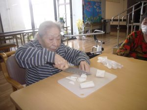 皮を剥いて、食べやすい大きなに切っていきます!