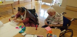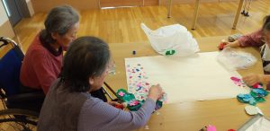 「これはここに貼ったらいいかな~」「どこに貼ろうかな~」とお話しされながら