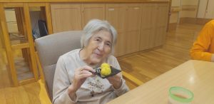 職員がさつまいもを潰し、ご利用者様にラップで包み絞っていただきました。