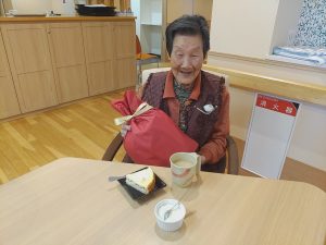 生クリームやトッピングのフルーツを選んでいただき、ご自身で飾り付けて頂きました。
