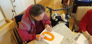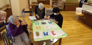 干支の絵を張り付けながらご利用者様同士で干支の話しで盛り上がっており、