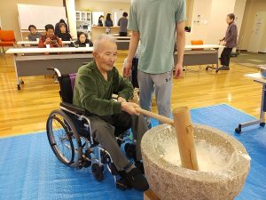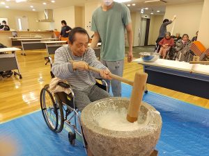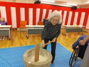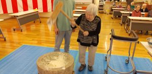 「よいしょ~!よいしょっ!」と掛け声に合わせて餅をつきますo(*^▽^*)┛