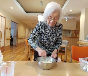 ご利用者様にグルグルと混ぜる作業をお願いしました★☆彡