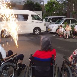 ☆*: .花火 . :*☆ を行いました‼ 「持つの怖いけど、綺麗だね✨」「色が変わっていくのすごいね~」 勢いよく噴出する花火はとても迫力がありました‼ 最後は線香花火を行い、揺れて落ちないよう皆さん真剣なご様子でした … “3丁目 ユニットレク” の続きを読む