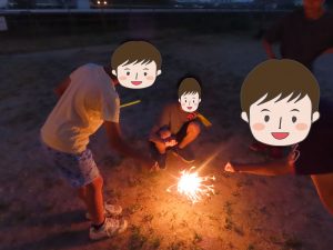 こちらは、お盆に行った花火大会です。毎年沢山の花火を寄付してください方がみえます。本当にありがとうございます。