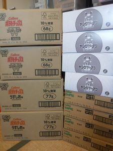 せっかくなのでと株式会社東栄社様はお菓子を沢山寄付していただきました。