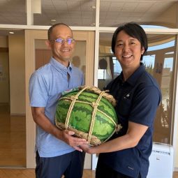 本日 株式会社豊栄商会 様より【ジャンボ西瓜】を 2つ寄付して頂きました。 おっきくてみんなびっくり、ワイワイワイワイ 「スイカ割りしたい~」これでやるのは止めて~~~ そういうと、「持てるかな~」と力比べ … “スイカの寄付をいただきました。” の続きを読む